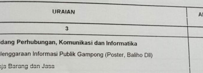 Bidang perhubungan, komunikasi dan informatika 31 Maret 2022 peunyerat-gp 0 JUMLAH ALOKASI DANARp. 40.525.000,-PENANGGUNG JAWABMouren Ariska