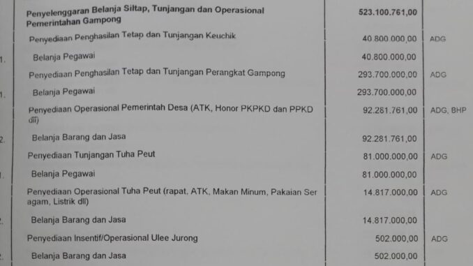 Penyelengaran belanja siltap, tunjangan dan operasional gampong