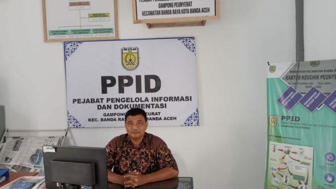 Peunyeurat – Keuchik Gampong Peunyeurat Kecamatan Banda Raya Kota Banda Aceh, T. Ismed Fadillah bertempat di Kantor Keuchik mengatakan bahwa atas dukungan dari Instansi Pemerintah baik Pemerintah Provinsi Aceh maupun Kota Banda Aceh, serta dukungan dari Masyarakat Gampong Peunyeurat. Kami berkeinginan sekali untuk meng inplikasikasikan Keterbukaan Informasi Public kepada semua pihak sehingga Pemerintahan Gampong Peunyeurat dapat diljalankan sesuai dengan peraturan. Tentunya ini sejalan dengan azas pengelolaan Dana atau Anggaran yang ada di Gampong. Dengan mengikuti Apresiasi PPID merupakan salah satu cara bagi kami untuk memberikan Komitmen Keterbukaan Public. Semoga pihak yang berkompeten dalam Verfikasi Lapangan memberikan kesempatan kepada PPID Gampong Peunyeurat untuk mengikuti Apresiasi PPID Tingkat Nasional. Kepercayaan ini akan kami imbangi dengan Peningkatan SDM Aparatur Gampong.